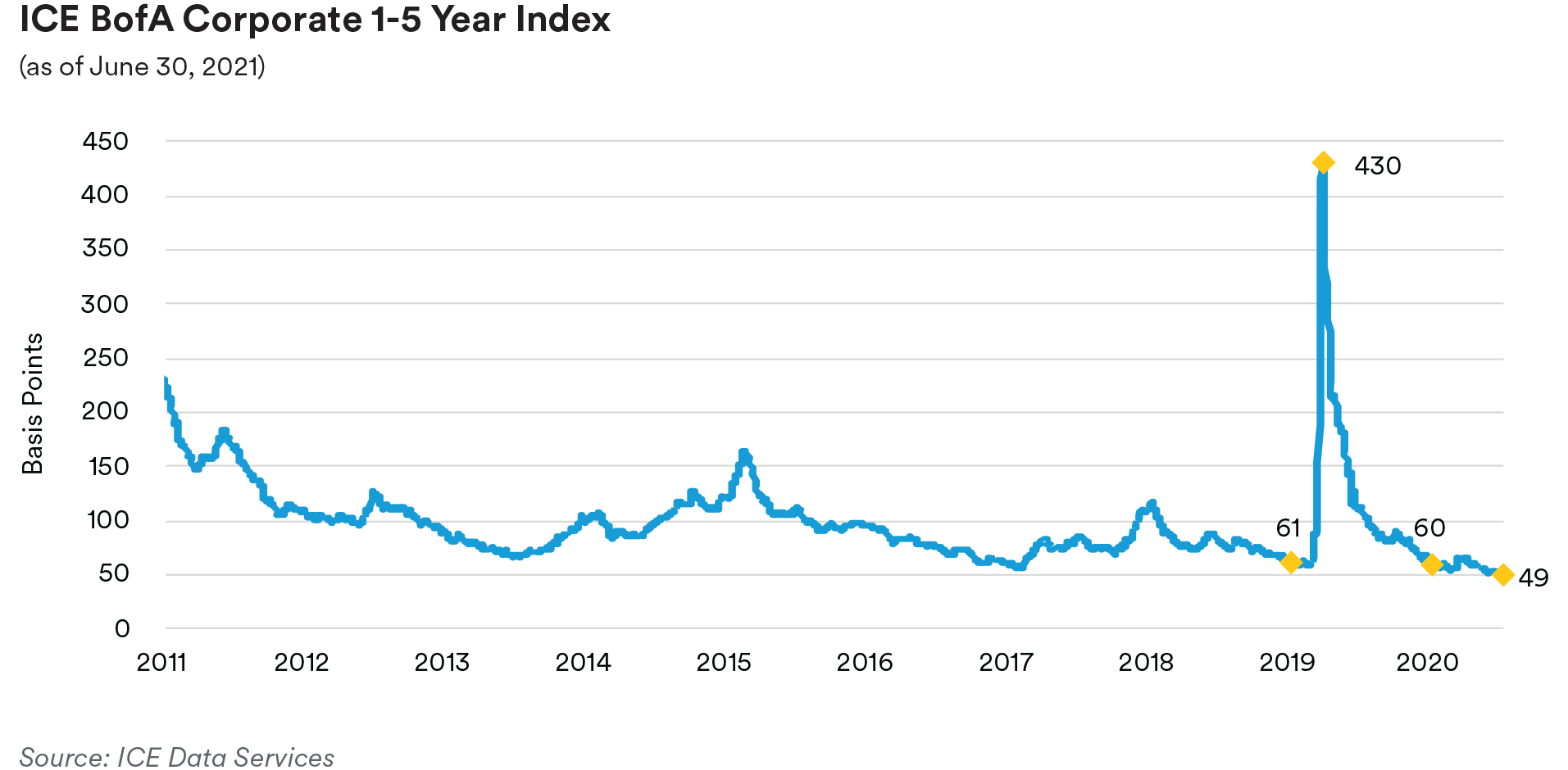 Portfolio Actions & Outlook: We saw the bellwether front-end 1-5 year investment grade corporate index, which began the quarter at an option-adjusted spread (OAS) of 64 basis points, end the quarter at an OAS of 49 basis points, near record tight levels. While the growth picture and fundamental outlook for most companies looks positive over the next several quarters, we remain a bit cautious based on what we view as rich valuations. Demand has returned to pre-pandemic levels for many companies but their cost structures are under pressure due to some of the unique aspects of the global economy’s reopening, which has introduced a number of distortions and higher costs, possibly weighing on earnings and taking some time to correct. In addition, the Fed’s removal of its crisis-era loose monetary policy, no matter how well telegraphed, is expected to lead to higher market and spread volatility, which we expect will lead to the eventual repricing of the investment grade corporate sector wider. As a result, looking ahead we anticipate sticking to our more defensive, up-in-quality positioning and holding sector weightings relatively stable as we did over the second quarter until we see a better entry point develop to increase our risk profile.