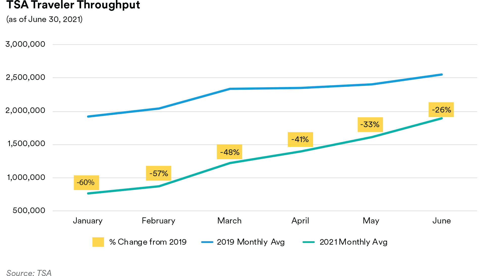 Another significant development over the quarter was the recovery in air traffic and passenger volume as the reopening continued. TSA throughput traffic increased on average to 67% of 2019 levels during the second quarter compared to only 45% sequentially on average during the first quarter. Vaccine rollout, as approximately 60% of U.S. citizens above the age of 18 have been fully vaccinated, has bolstered spring travel and unleashed the pent-up demand from COVID lockdowns experienced in 2020. As a result, on May 4, stemming from the increase in passenger demand, Moody’s revised their outlook on the airport sector to positive from stable shortly after revising their outlook to stable from negative back in March.